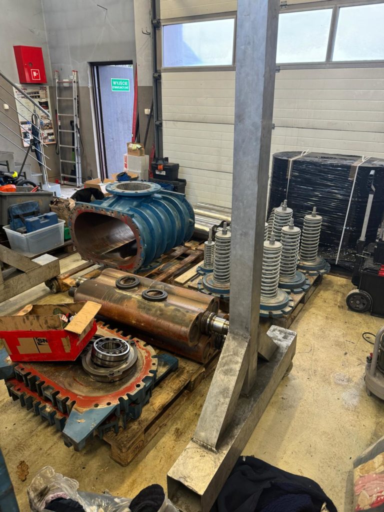 Remont pozostałych dwóch starych dmuchaw w naszym serwisie w Tychach transport do Klienta, zabudowa i uruchomienie.